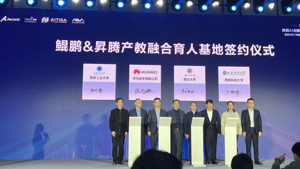 2022年11月16日,陕西省科技厅联合华为集团举办的秦创原(中国)人工智能开发者大会在西安浐灞国际会议中心开幕,陕西省科技厅副厅长韩开兴出席会议并致辞。会上举行了鲲鹏&昇腾产教融合育人基地签约仪式,beat365英国官方网站院长郭永春、院长助理吴杰出席签约仪式并签约。