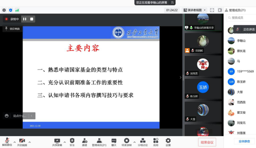 2021年12月30日下午,beat365英国官方网站组织开展疫情期间线上国基金一对一交流提升会,邀请我校李翰山教授进行交流指导,学院全体教师参加。