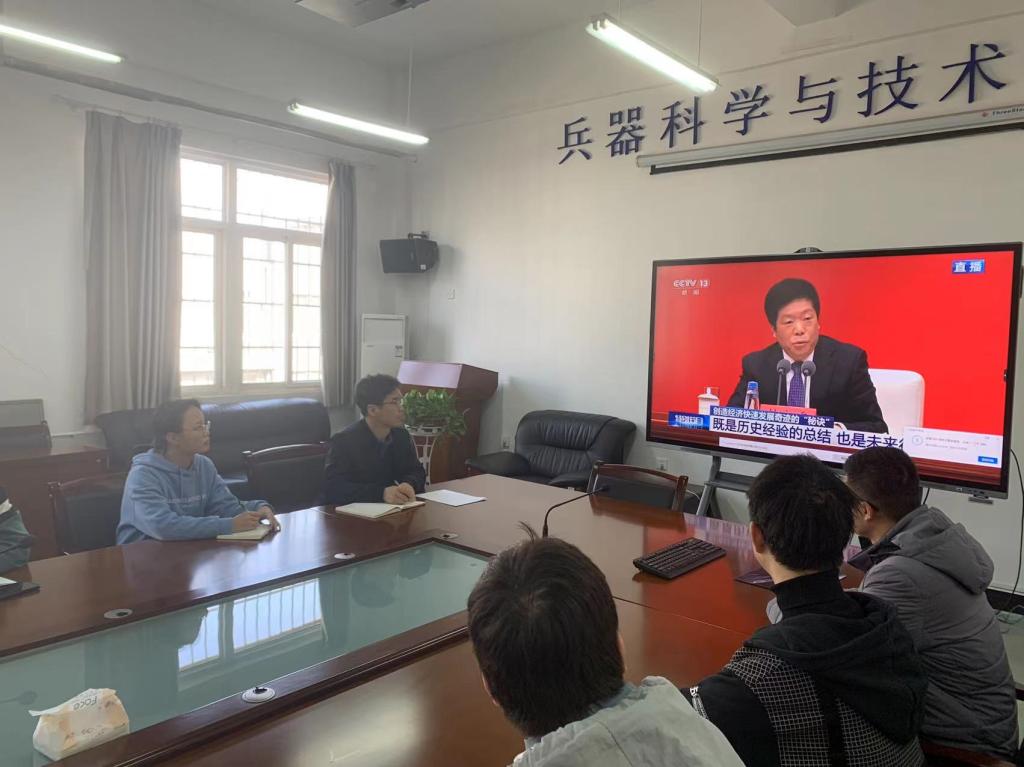 2021年11月12日上午10时,中共中央举行新闻发布会,介绍党的十九届六中全会精神,beat365英国官方网站举行了视频观看学习讨论,会议由郭永春院长主持,学院教工支部和学生支部全体党员参加。