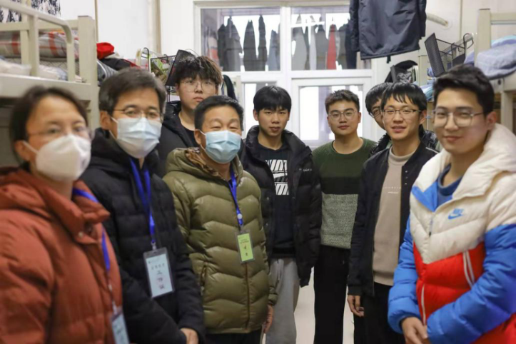 空不隔爱,用心陪伴,确保学生健康发展。疫情期间在校学生严守防疫政策,不离寝室,学生的身心健康发展是学院关心的重中之重,为预防和缓解学生出现焦虑等心理问题,住校院领导及教师深入宿舍看望慰问学院学生,解决学生面临的实际问题。学院教师心系学生,与学生线上交流指导,帮助疏导情绪,让学生保持积极、稳定、乐观的心态。