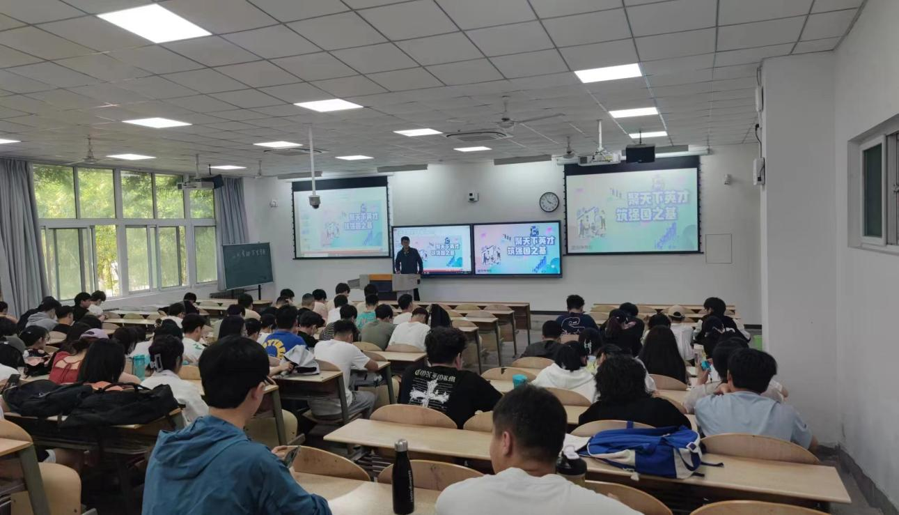 2023年5月24日,beat365英国官方网站王国栋老师在教2-104开展了以“聚天下英才筑强国之基”的主题教育,beat365英国官方网站本科生、研究生参加培训。