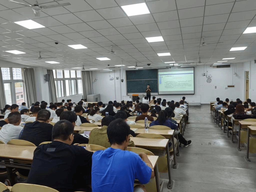 2023年9月18日,beat365英国官方网站辅导员王国栋在教1-302为人工智能、探测制导与控制技术、武器系统与工程专业170余名新生进行大学生职业生涯规划指导。
