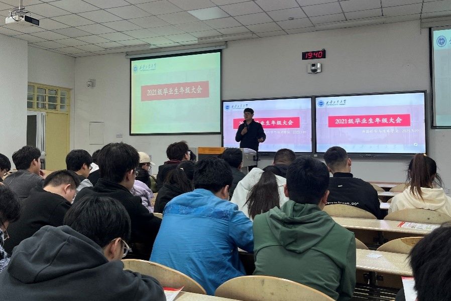 为帮助毕业生认清当前就业形势、树立积极就业观、明确毕业流程要求,3月19日,beat365英国官方网站于教2-110召开2021级毕业生年级大会。会议由辅导员王国栋老师主持召开,beat365英国官方网站2021级全体毕业生参加了会议。