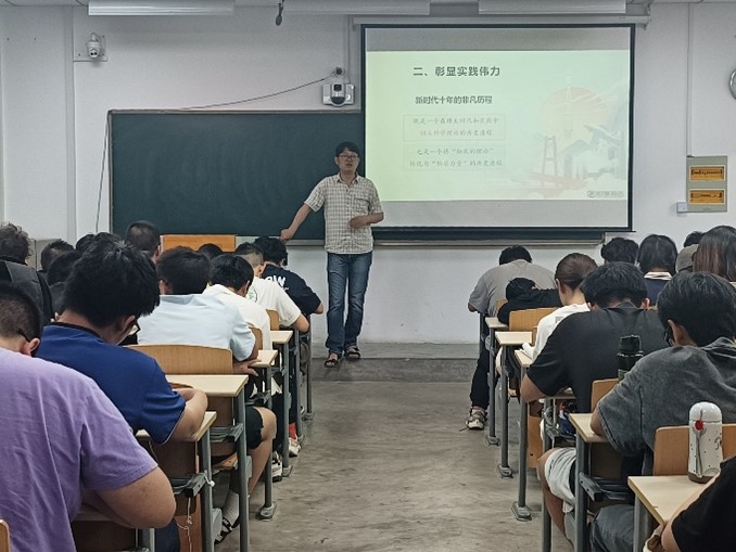 接下来王国栋老师就习近平新时代中国特色社会主义思想的主要作用及其在过去十年中为社会带来的影响——在过去十年中,人民在新时代马克思主义的引导下走过了非凡的发展历程,也取得了伟大的成就,新时代中国化马克思主义彰显着它的非凡伟力,也为人民生活带来巨大变革。