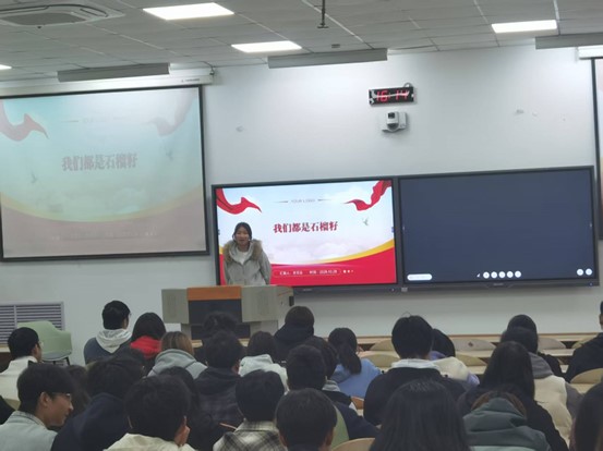 曹景晶以“我们都是石榴籽”为核心主题展开授课。她结合自身担任团干部的实践经历,首先从共青团的初心与使命出发,深入浅出地阐释了“石榴籽”所象征的团结内涵——如同石榴籽紧密相拥,团员青年更应心往一处想、劲往一处使,在集体中凝聚力量、共同成长。授课过程中,她还结合新时代青年的责任与担当,鼓励24级团员们以先辈为榜样,将个人理想融入国家发展,在专业学习与团的建设中贡献青春智慧。