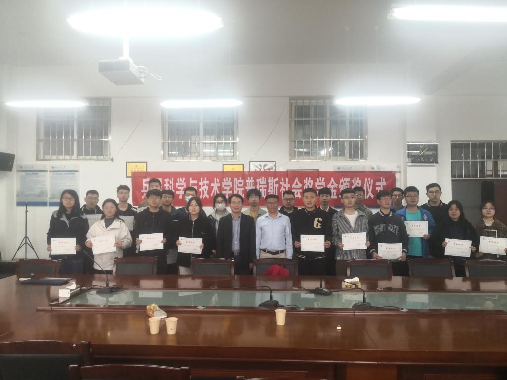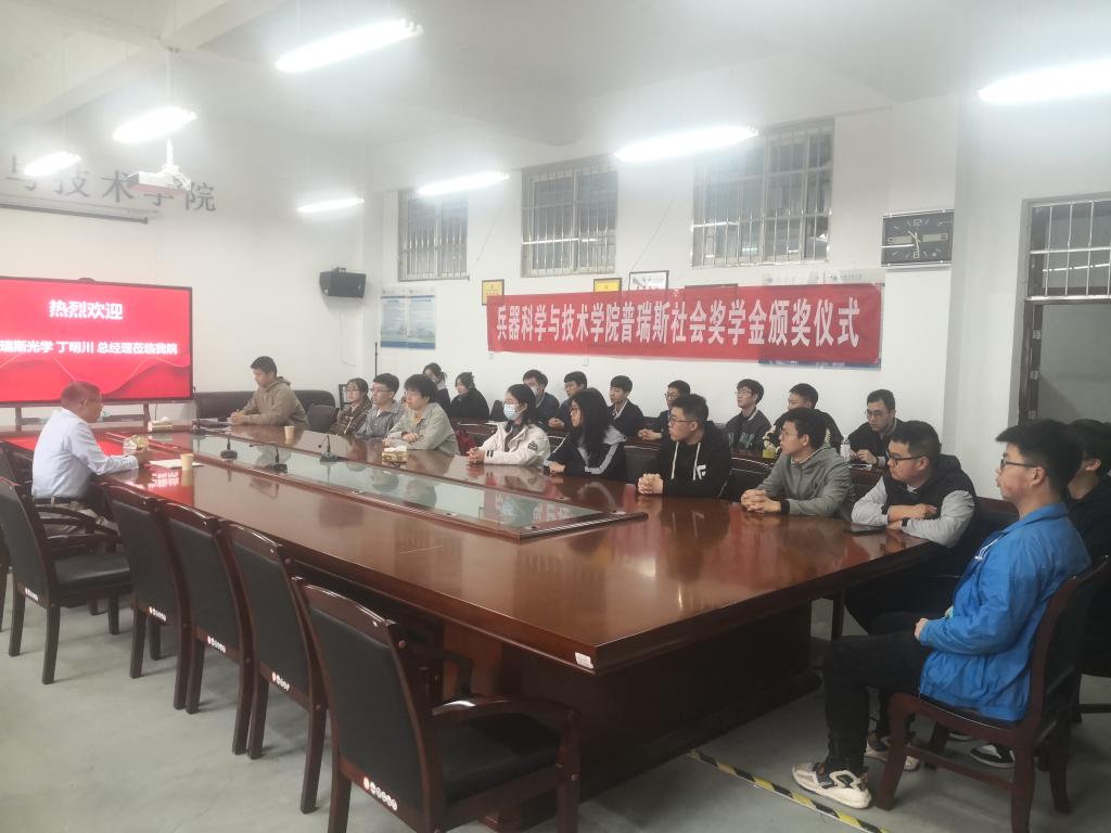 2023年4月24日早上10:30分,beat365英国官方网站在工6-507召开普瑞斯奖学金颁发大会,会议由辅导员王国栋老师主持,普瑞斯光学技术有限公司丁明川总经理、beat365英国官方网站蔡长龙副院长、2021-2022年度本科生、研究生普瑞斯奖学金获得者二十余人参加了会议。