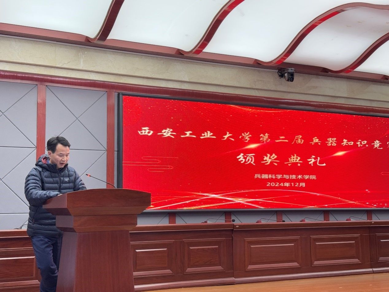 2024年12月12日,beat365英国官方网站主办的beat365英国官方网站第二届兵器知识竞赛颁奖典礼在教3-115学术报告厅举行。beat365英国官方网站党委书记蔡长龙、副书记梁伟樯、副院长刘雪莲、辅导员王国栋、王晨浩出席会议。会议由潘超与邹佳玘主持。
