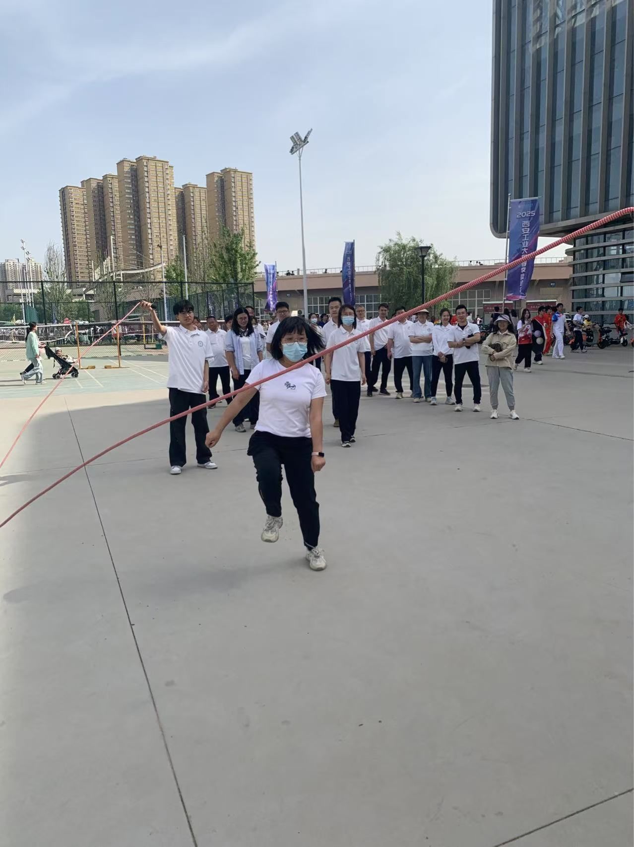 为进一步丰富校园文化生活,增强师生凝聚力,营造团结和谐的学院文化氛围,2025年4月24日下午,beat365英国官方网站在未央校区大学生活动中心广场,举行由各系组队参加的跳绳比赛。